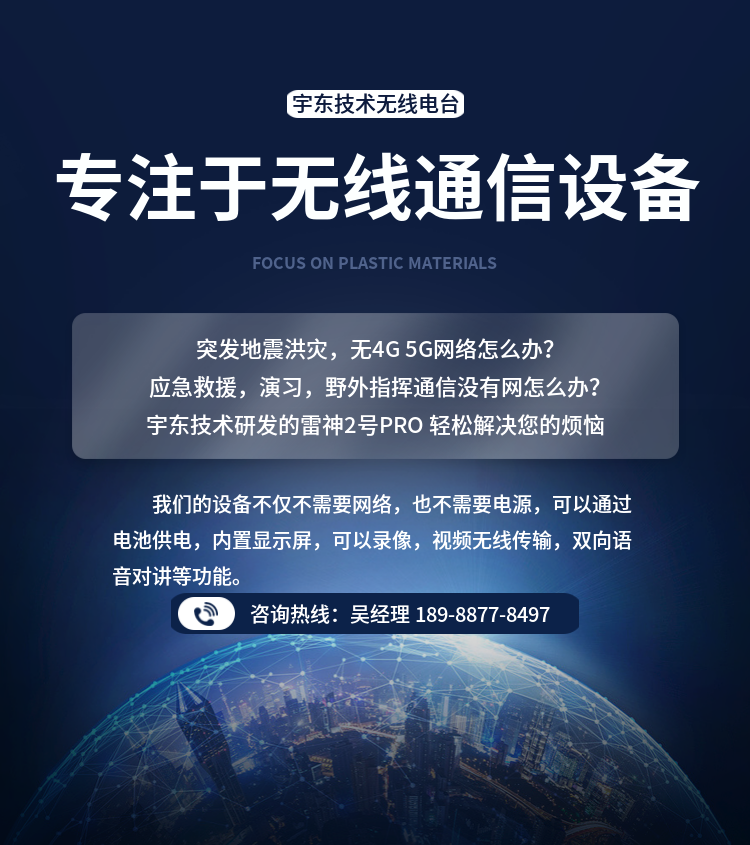 雷神2號PRO 便攜式手提箱版本高清無線圖傳電臺,是公司針對應急救援指揮、公安、反恐作戰、消防救援、邊防執勤、海警海關巡檢、部隊拉練演習、森林消防等,在突發重大事件,斷網斷電,通信中斷的情況下,現場工作人員通過宇東雷神系列單兵圖傳電臺,把現場采集的數據實時無線傳輸到指揮車/臨時指揮部大屏幕,讓指揮部領導對現場情況一目了然,節省了到達現場的時間,可快速做緊急指揮調度,最大限度的減少突發事件帶來的各種損失,宇東雷神2號plus單兵電臺支持雙向語音對講系統,現場工作人員可以和指揮部通話,接受領導發送的各種指令。